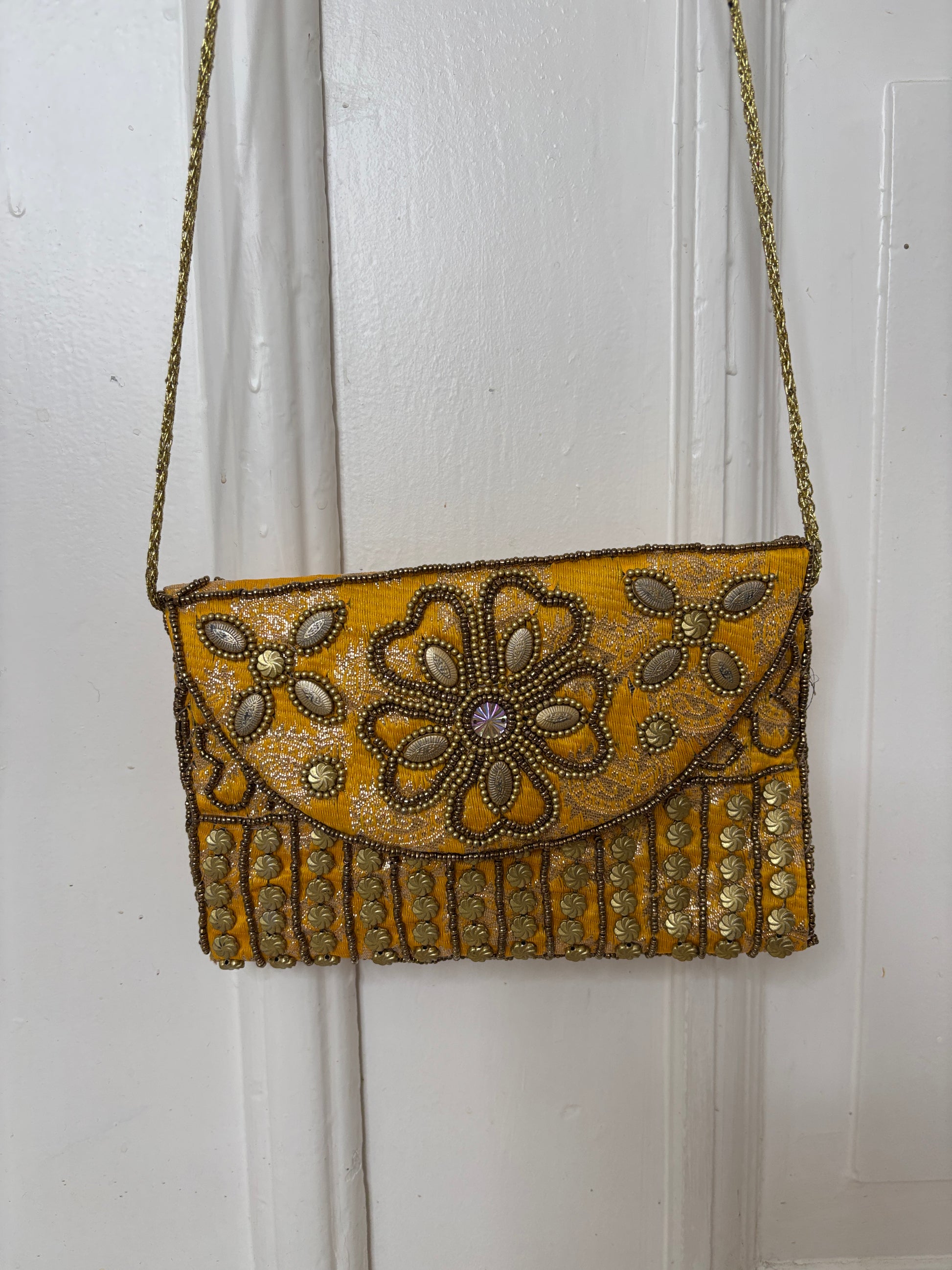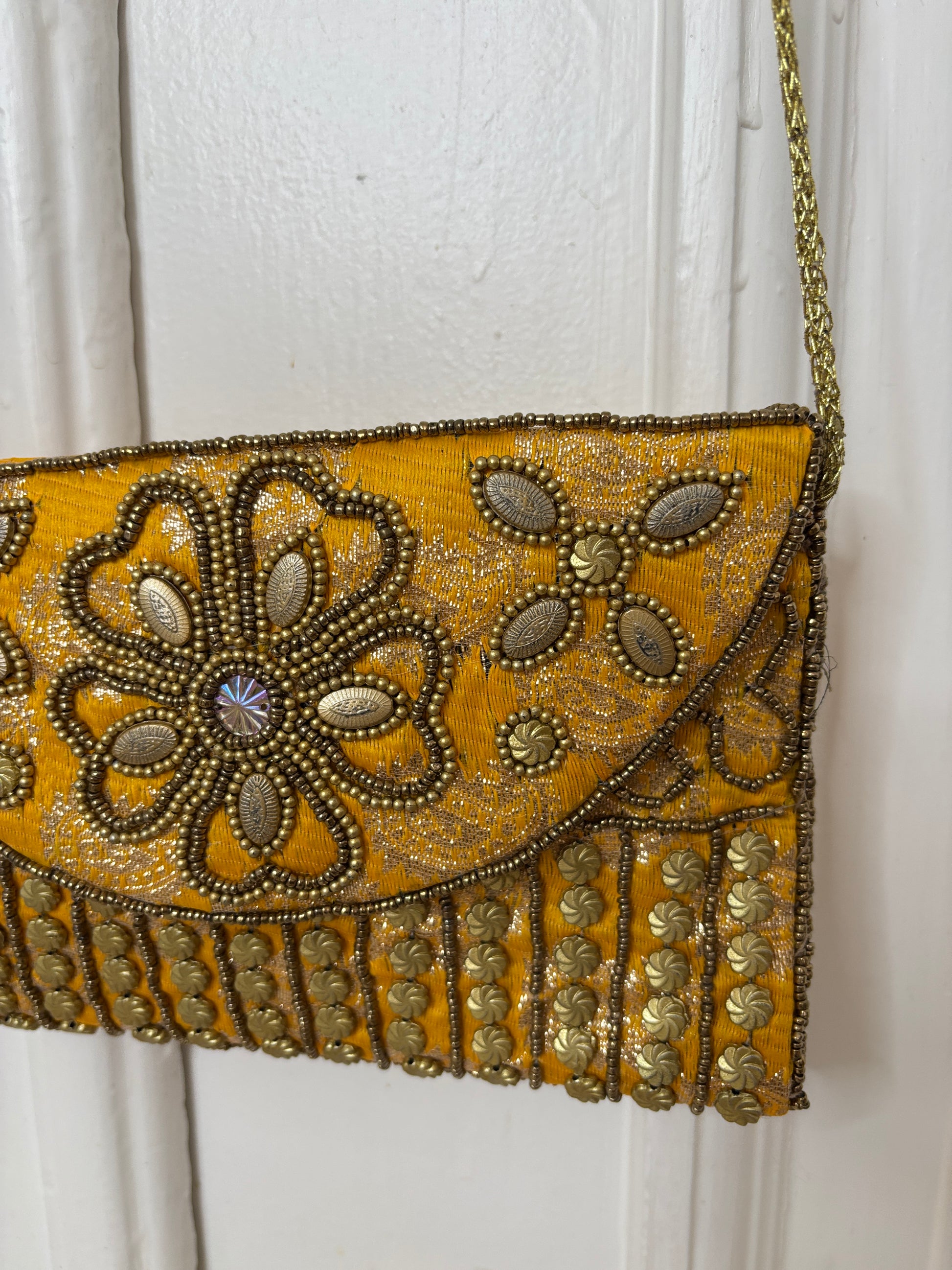 Tasken har en fin guldsnor så den kan tages over skuldren.