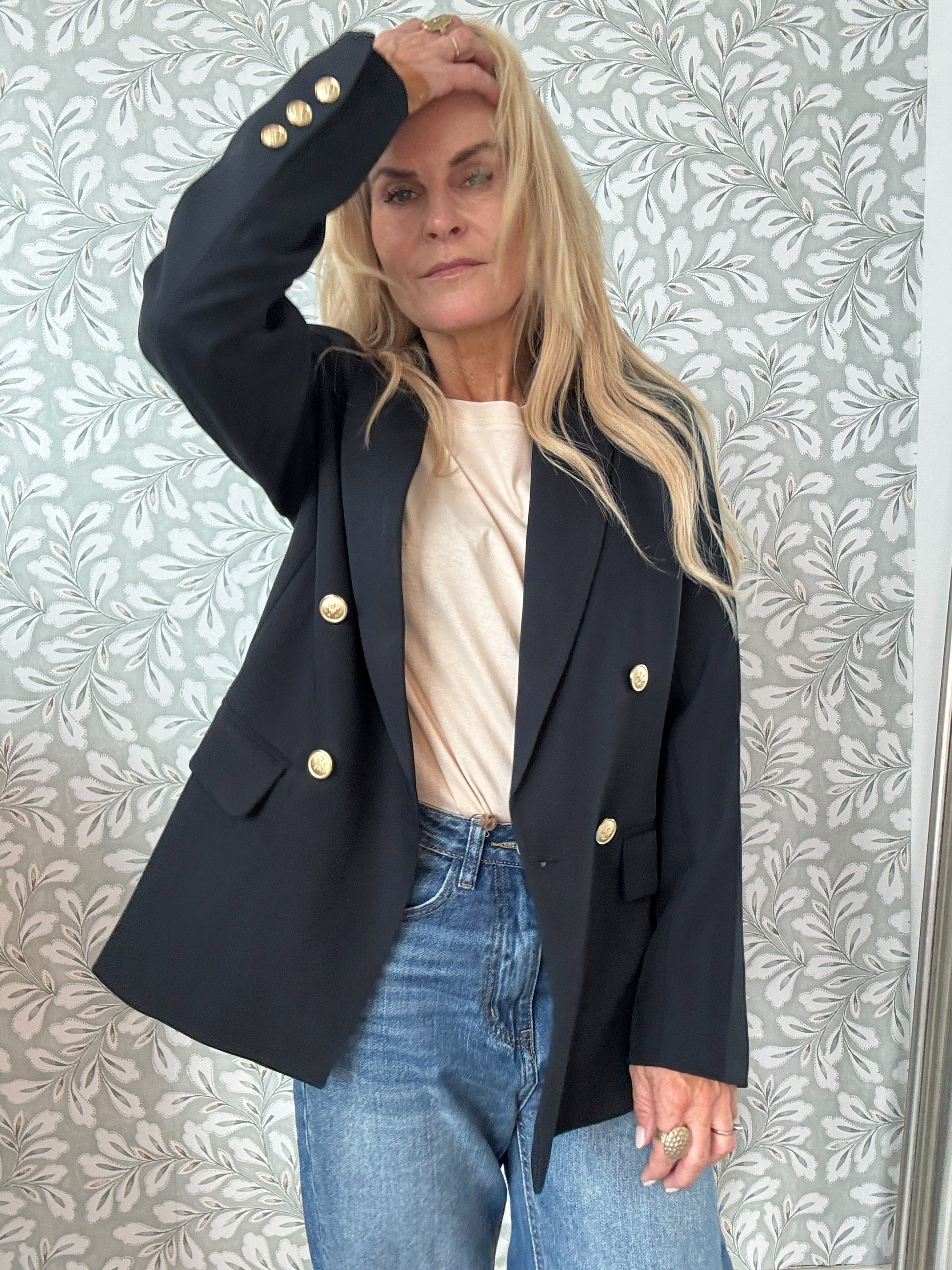 Klassisk fransk inspireret blazer i sort med guldknapper